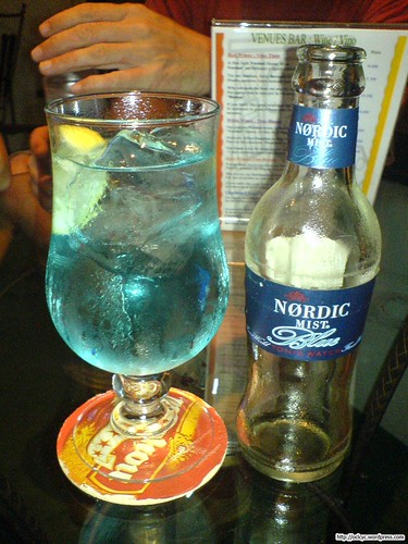 Y para que conste, fotico al canto, donde se aprecia claramente el tono azulado que confiere a la bebida (para más información, un gin-tonic, aunque no un Charún — de ésto ya hablaré otro día 🙂 ):